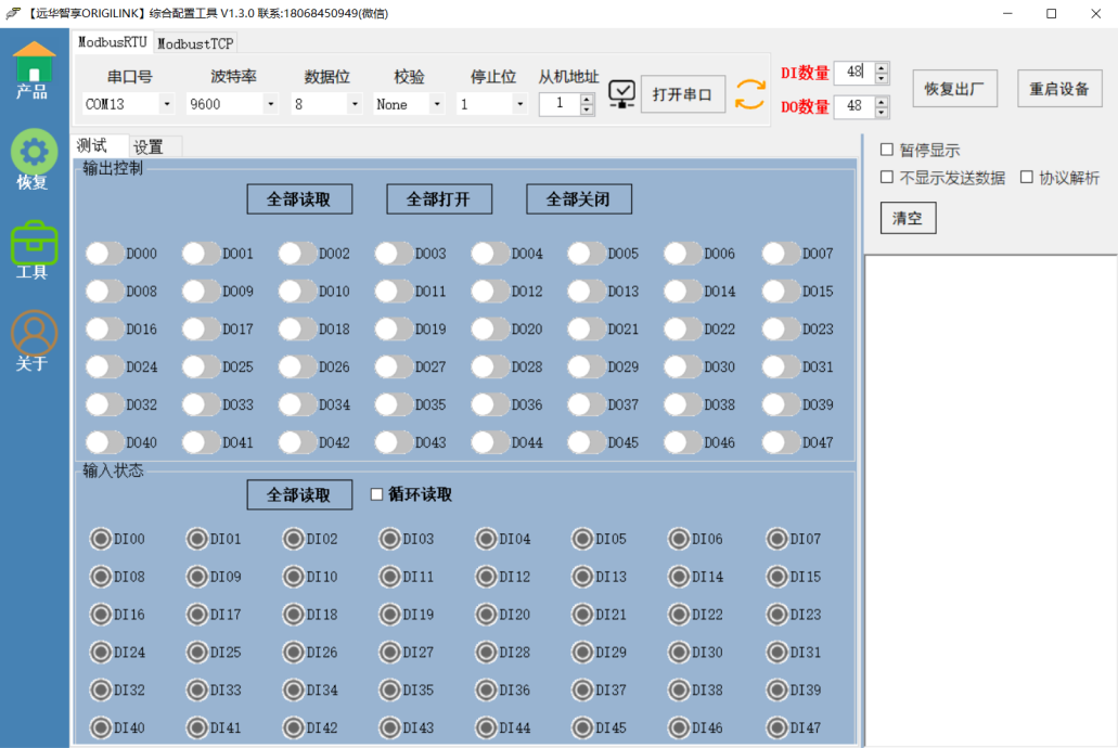 我司上位机软件中有免费使用的Modbus RTU调试工具,方便用户开发测试协议,并具备协议解析功能,界面如下:
