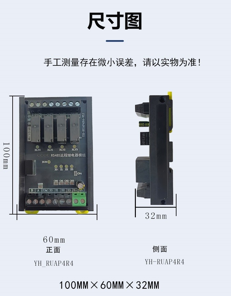 | 外形尺寸 | 继电器款100x60x32mm,MOS管款100x60x37mm |