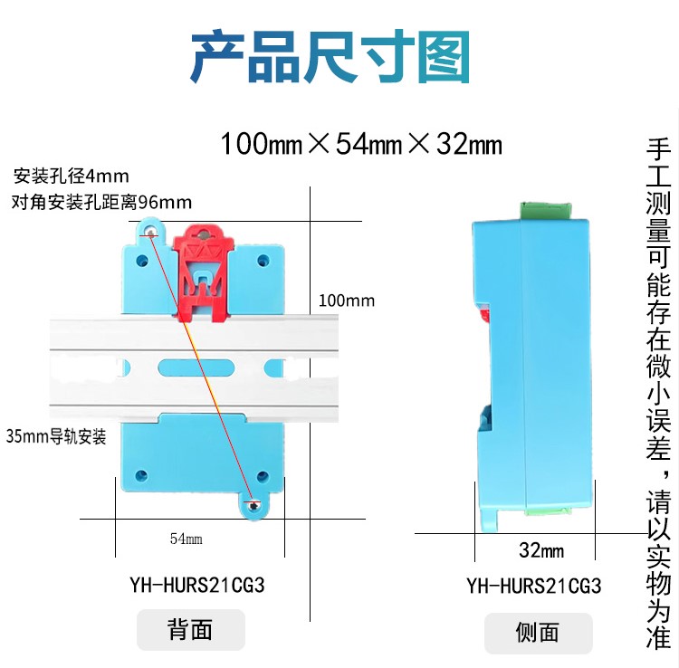 - RS485通信隔离版本,隔离电压1500V,内置防静电、防浪涌,抗干扰强