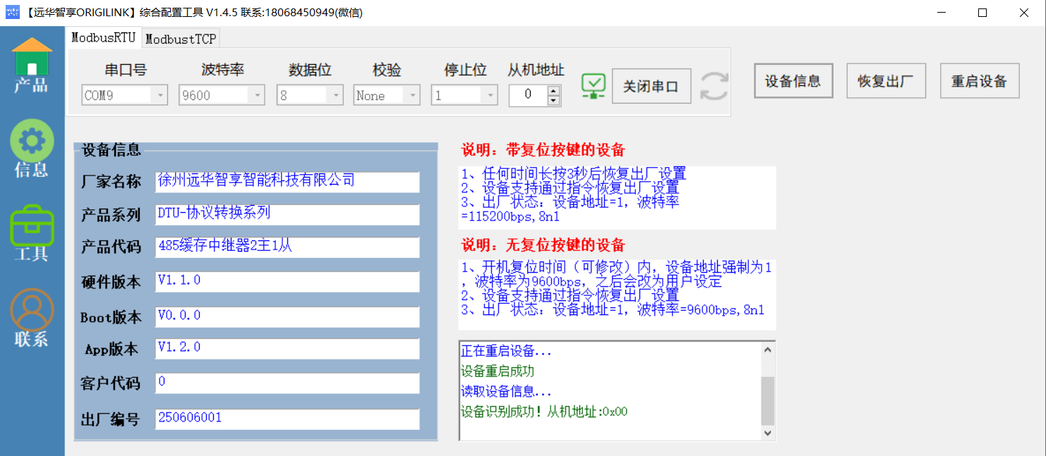 ⚠️注意:调试时需要用到USB转485串口工具,如需采购我司有售,详见USB转485-232工具
