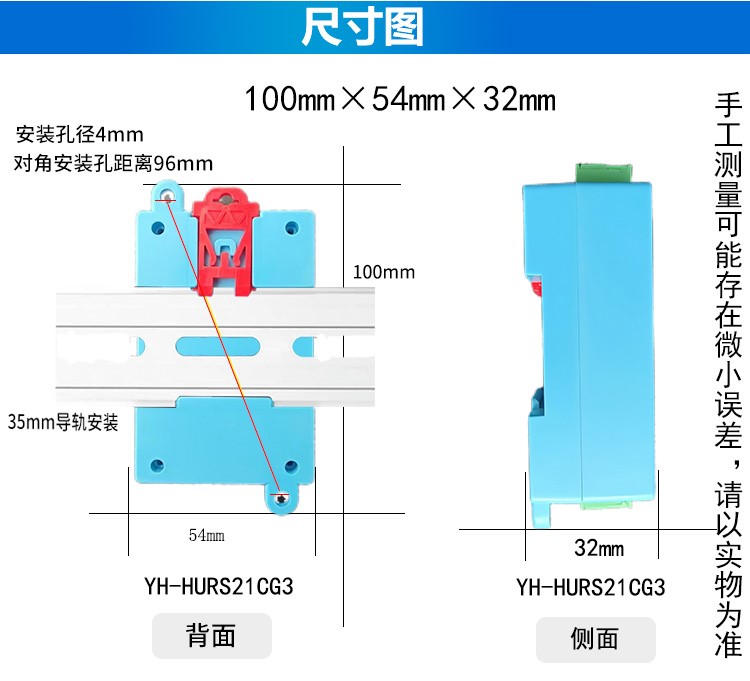 - RS485通信隔离版本,隔离电压1500V,内置防静电、防浪涌,抗干扰强