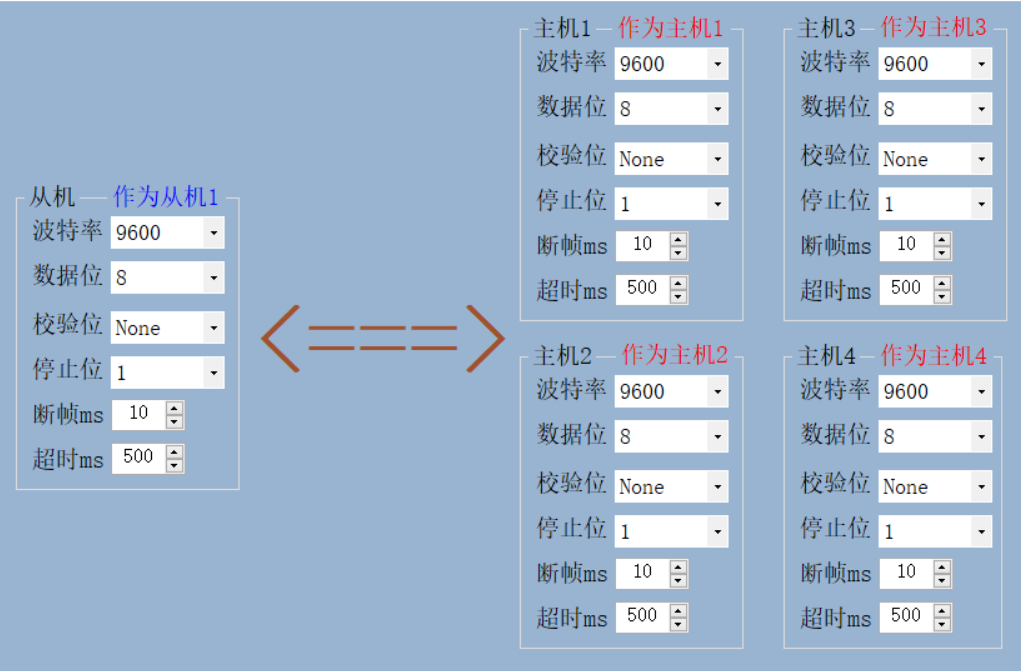 2主1从、4主1从模式下,设备采用智能缓存处理机制等,可确保485总线上数据不冲突,每个主站都可以正常访问从站,并且数据不会乱。