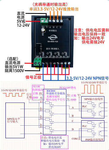 ⚠️Tips:黑色款转单端是分开的(绿色款的输入侧公共端是4路共用的),信号兼容NPN或PNP输入。