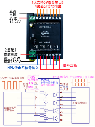 输入信号支持NPN、PNP信号输入,黑色外壳款增加支持差分信号输入。