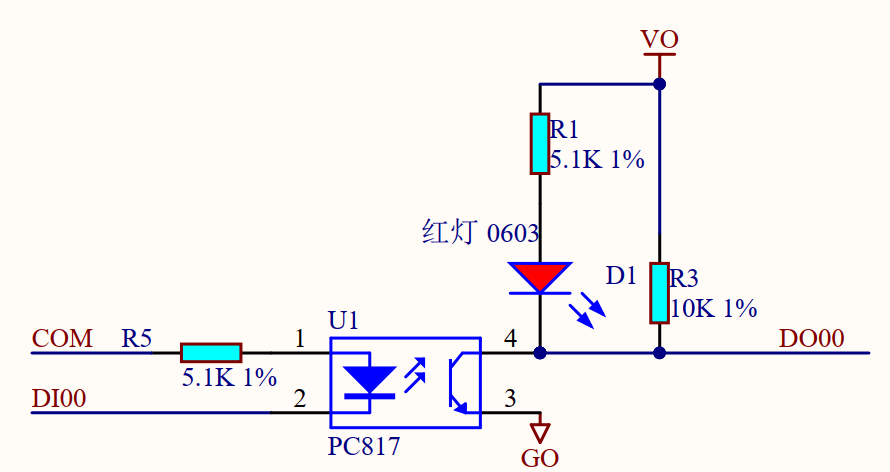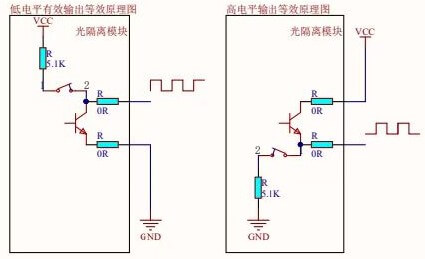 - 当有NPN低电平信号输入时,光耦导通,LED灯亮,输出信号为