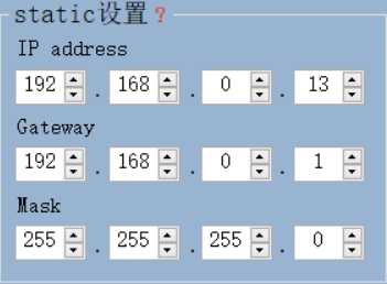 设备支持static静态IP模式,和DHCP自动获取模式,当使用“DHCP”时,“static设置”的内容用户可忽略,设备将自动获取相关信息。