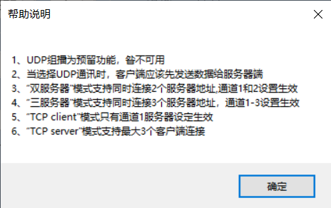 UDP client:设备作为客户端,由于UDP性质决定第一次无法主动与客户端通信,须上电后由客户端主动发数据给UDP服务器,后续通信则无此限制。
