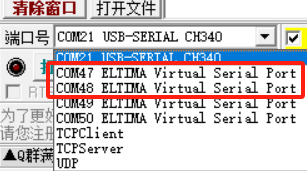 此时打开串口助手工具,即可看到刚才创建的COM47、COM48了,此时就可以通过虚拟串口与以太网协议转换器通信了。