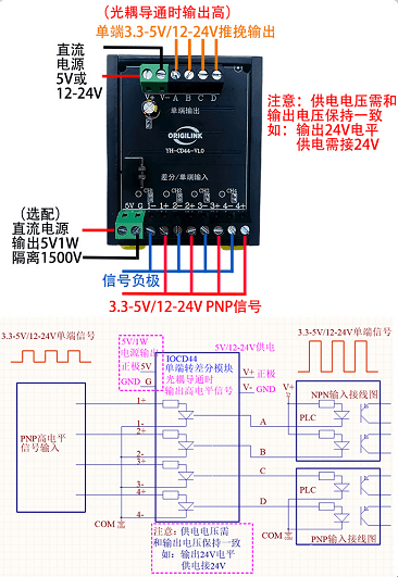 ⚠️Tips:黑色款转单端是分开的(绿色款的输入侧公共端是4路共用的),信号兼容NPN或PNP输入。
