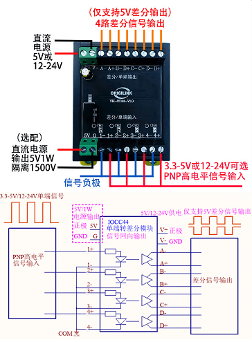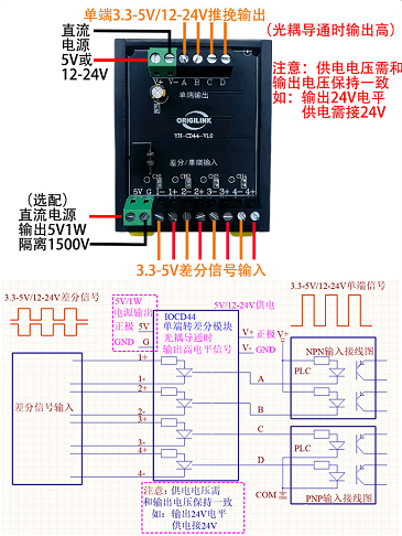 输入信号支持NPN、PNP信号输入,黑色外壳款增加支持差分信号输入。