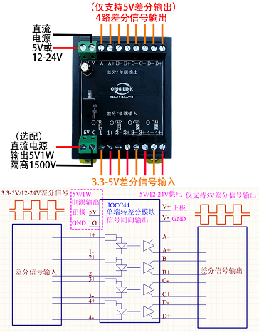 本款产品支持: 差分信号输入-->差分信号输出 单端信号输入-->差分信号输出